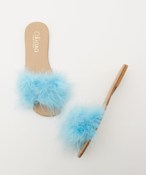 ■■ネクストトレンドのフェザーサンダル■■ 投入するだけで今年らしいスタイリングを叶えてくれるフェザーサンダル。 ふんわりボリュームたっぷりのフェザーが足元を華やかに演出してくれる1足。 フラットデザインで履き心地も抜群。 華やかな雰囲気漂うリッチな仕上がりはコーデをワンランク上に格上げ。 素足はもちろん、ソックス合わせにも決まる1足! アメリカンラグシー/205-HIA-10623