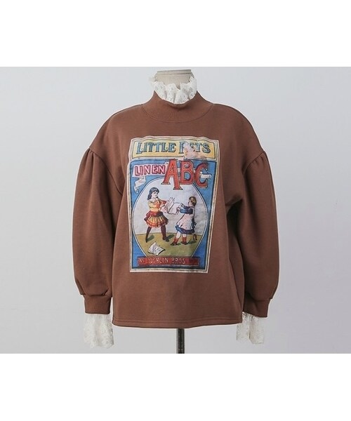 フロントのイラストプリントがPOINTになったスウェットです。 レースのブラウスをレイヤードしたかのようなデザインが魅力的! ボリュームのあるシルエットがフェミニンな着こなしをアシスト★ スカートにもパンツにも合わせやすいラブリーな1枚です。
