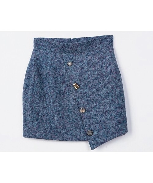 ミックスカラーがニュアンスのある着こなしを叶えるスカート。 形の異なるボタンが上品なアクセントになってくれます。 斜めの切り替えデザインもお気に入りポイント。 存在感を引き立ててくれるので、コーディネートの主役アイテムにオススメです。