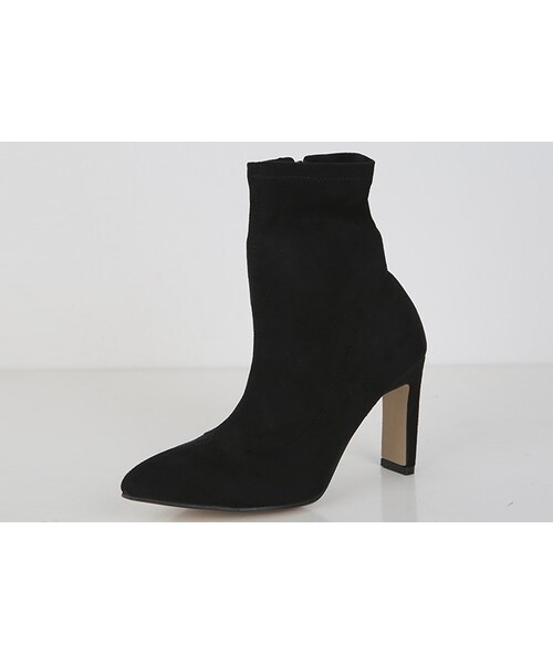 一足は持っていたいシンプルなショートブーツです。 シャープなポインテッドトゥとハイヒールがきれいなレッグラインを演出してくれます。 シーンやテイストを選ばず使えるので、一つあると重宝します★