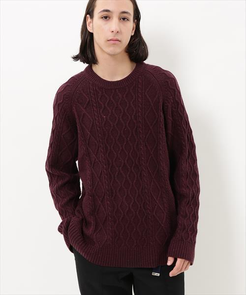 トラッドさの中に、程よい抜け感のあるカラーネップが入った糸で仕上げたケーブル編みニット。冬にぴったりの温かみのあるケーブルニットですが、リブのテンションを弱くすることで抜け感のあるボックスシルエットにしています。ワイドパンツと合わせて、ルーズに着こなすのがおすすめ。