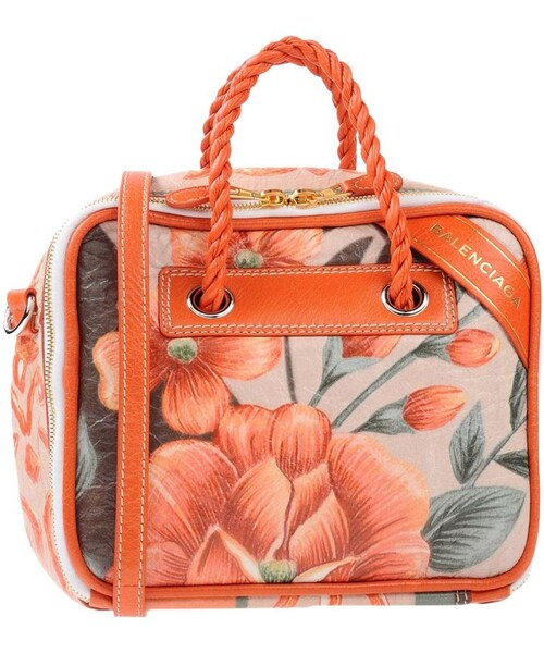 BALENCIAGA Handbags. mini, logo, floral design, zip, internal pockets, double handle, removable shoulder strap, leather straps, fully lined, contains non-textile parts of animal origin, satchel bags. Lambskin, Textile fibers