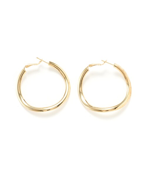 ゴールドカラーのメタル素材に、ラグジュアリームード漂うフープピアス♪ 存在感のある大きさだから、コーディネートのアクセント使いに大活躍する一品♂ 立体感を出す少しカーブがかかった形が、どの角度から見てもオシャレに見えるポイント◎ ★素材の特性上、カラーが、写真と多少異なる場合があります。