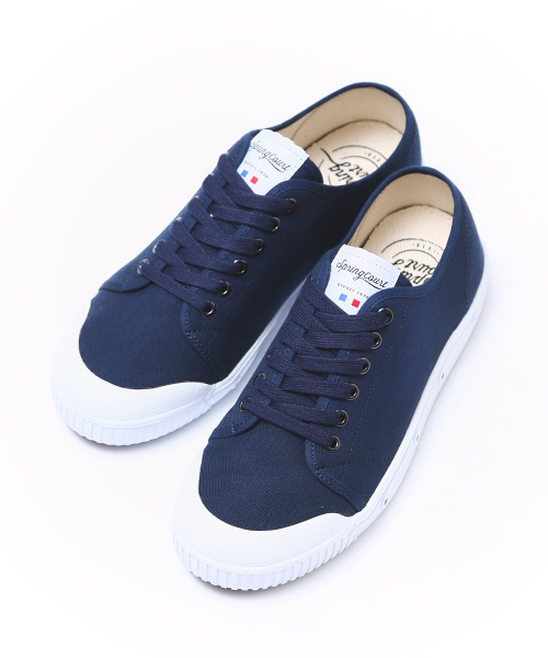 テニスシューズとして1900年代初期に創業者のテオドール・グリムソンがキャンバスとゴム底をバルカナイズ製法で合わせるスニーカーを考案。 1952年にはインソールを丸洗いできるよう着脱可能にし、両サイドに4個ずつ計8個の空気穴を設けることで、自然に空気が靴の中に流れ込む“Natural Parmanent Ventilation System”で特許を取得。より清潔で履き心地のよい現在のモデルが完成しました。 【SPRING COURT/スプリング コート】 1936年フランスで最初に製造されたスニーカースプリングコート。フレンチオープンテニスのクレーコート用テニスシューズが原型。8個の空気穴により通気性が良く、 丸洗い可能な素足で履くためのスニーカーの逸品。今も踏襲されるその外観は他のブランドとは 違うクラシカルな雰囲気が味わえる。現在の製法は1952年に開発され、 今でも当初の機械と製造工程で手作りされるローテクスニーカー。ミュージシャン・写真家・デザイナーなどのアーティスト系の人々に 愛用者が多いことでも知られています。