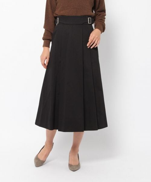 ロング丈のフレアラインシルエットが体型を美しくみせ、ハイウエスト設定で脚長効果も期待できます。ウエストサイドアジャストでサイズの調整が可能なのも嬉しいポイント◎サイドバックルが前側にありシンプルコーデにアクセントを加えます。チノ素材のスカートは一年を通じて長くお使いいただけます。