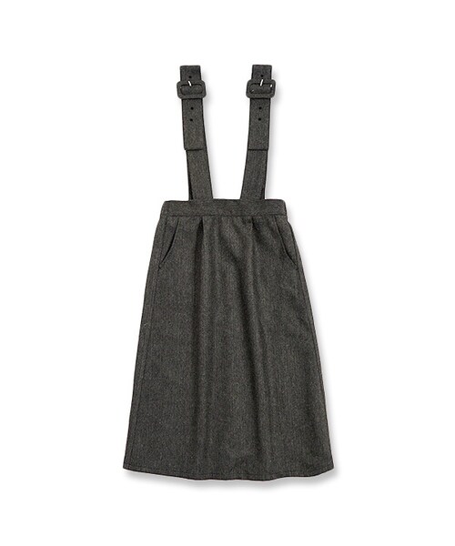 肩ひもには5つ穴があいているのでピッタリの長さに調節していただけます。 カジュアルな雰囲気なサロペットとしての着用時から、肩ひもはウエスト内側のボタンで取り外し可能になって、ベルトを取り外せばシンプルなIラインスカートとして着用していただけます。 2WAYで着回しができるので、トレンド感がありつつも、通勤や普段使いで汎用性の高い1着です。 大人過ぎない女性らしいコーディネートや、スカートとしてボリューム感のあるニットと合わせたスタイリングがオススメです!
