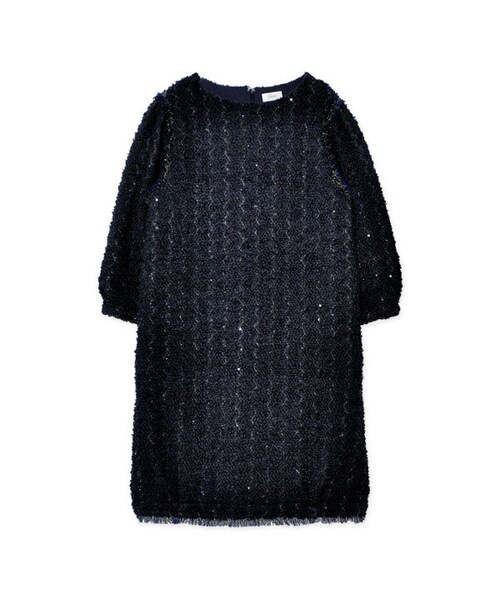 ふわふわとしたニットソー生地に透明のスパンコールを縫い付けて、光を反射してキラキラと輝きます。 肩と裾に施したフリンジディティールでより一層華やかな印象に♪裾は広がらずにすっきりとしたシルエットなので、短めの丈でも子供っぽくなりすぎません。 ショートブーツを合わせれば冬の暖かくて可愛いデートスタイルに。大ぶりなアクセサリーやハイヒールを合わせれば、結婚式の2次会等にぴったりなパーティースタイルにも☆ 華やかに可愛らしくみせたいこれからのシーズンにぴったりなワンピースです。