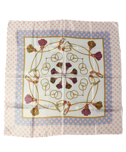 ドットフレームスカーフ☆ クラシカルな柄のスカーフをドットのフレームでキュートに仕上げた1枚。 大判のスカーフは肩から羽織る様に巻いたり、バッグの持ち手に巻いてポイントにしたり、ヘアアレンジに取り入れたりと様々な使い方のできるアイテムです。 店舗にお問い合わせの際は、下記の品名/品番をお申し付け下さい。 品名:AE DOT Frame SCF 品番: 56454990037