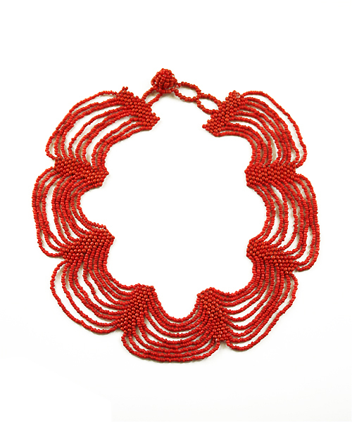 今季も引き続き目が離せない、つけ襟タイプのネックレス。小粒のビーズをフリル状に丁寧に繋ぎ合わせ、フェミニンさとゴージャスさを上手くMIXさせたデザインに仕上げました。 鮮やかポップなカラーから、落ち着きのあるシックなタイプまで豊富なカラーラインナップでご用意。デイリーからパーティーシーンまで、幅広いスタイリングで活躍すること間違いなしのアイテムです。 嬉しいプチプライスも魅力!色違いの重ね着けコーディネートもオススメです☆ ※ハンドメイドの為、サイズ感は一点一点異なります。あらかじめご了承ください。 ☆付属の台紙は、型崩れを防ぐために保管時にもお使いいただけます。 【 designsix LONDON 】 2004年Mark Watoson ,Tracy Watoson夫妻により設立されたブランド「designsix LONDON(デザインシックスロンドン)」。ダンサーだったTracyの、身体で感じる豊かな想像力とイギリス人の持ってるパンクな精神とが音楽、アートなどの文化的な要素が、独特の世界観を作っています。 原産国:インドネシア 店舗へお問い合わせの際は下記品番をお伝えください。 品番:73-44-0007-613 ※画像の商品はサンプルです。