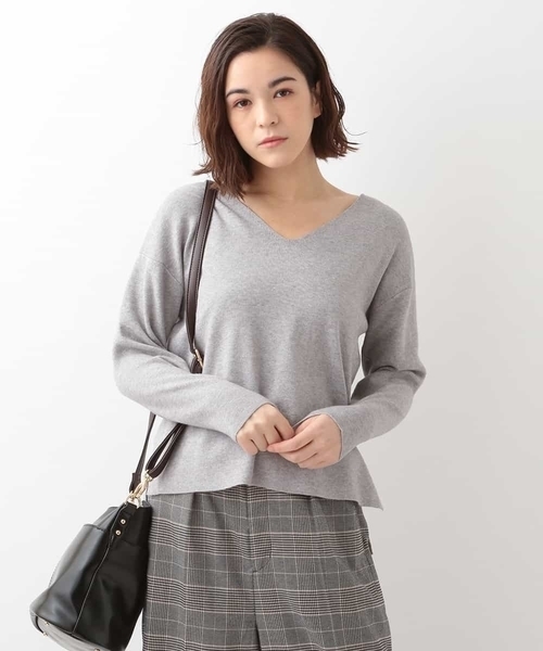ハイゲージの上品な編み地に抜け感のあるVネックがフェミニンムードなニットプルオーバー。シンプルな着回しの利くニットアイテムに、バックのメタルパーツが後ろ姿も美しく演出してくれる一着です。model:H160 B81 W58 H81 着用サイズ:M※ブラックのみドライクリーニングができません。