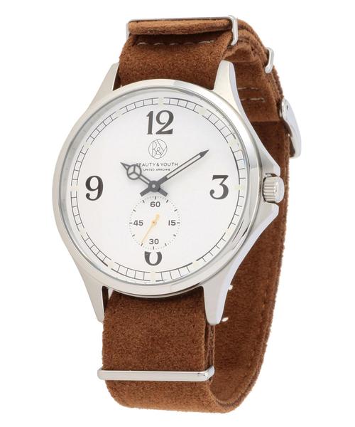 クラシカルなフェイスとクラフト感のあるベルトが特徴のビューティ&ユースオリジナルのミリタリーウォッチ。大き目で見やすいフェイスはもちろん、手元のアクセントになるデザインは、機能性とデザイン性を兼ね備えたアイテムです。レザーのブレスレットなどとのコーディネートで重ね付けもオススメ。プレゼントにもぴったりの逸品です!※替えのミリタリーバンド付き。 ■こちらの時計をお買い求めの場合、電池サービスカードは付属しません。予めご了承ください。 ※商品お届けの際の納品書は、お買上日を証明する書類として保証書と共に大切に保管して下さい。(コマ詰めや、修理などの際に必要となります。) 店舗にてお問い合わせの際は、下記の品番をお申し付け下さい。 品名:BYW MILITARY LTR42mm 品番:1443-699-0776