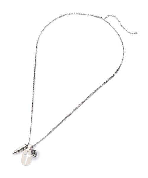 重ね付けが出来るように長めになっており、長さも調節可能。自分のお気に入りのチャームを足す事で、オリジナルネックレスにもなるアイテム。弾丸部分は、スクリューで開ける事が出来る仕様になっています。 ”gunda” [ガンダ]1998年に誕生。ヴィンテージライクな質感にこだわったレザー×メタルコンビネーションのコスチュームジュエリー、ベルト、バッグなどを中心に1999年よりシーズンコレクションの展開を開始する。 初期のコレクションでは、あくまでもトラディショナルなレザークラフトのテクニックをベースとしながらも新しい手法でオリジナリティーを追求し、マスプロダクションでは再現できない手作業ならではのラインナップを発表。 細部まで創り込まれたディテールがエッジの効いたデザイン性を際立たせるだけではなく、使い込むほどになじむその製品は伝統技法に裏打ちされたauthentic感<本物感>をも確立し、他と一線を画す。 以後世界中からインスピレーションを受けたコレクションはさらに幅を広げ、シーズンコレクションの他にもエクスクルーシブ感のあるハンドメイドの1点ものジュエリー、アートピースシリーズの『ONE OF A KIND』ラインなどもランダムに展開。各国のアンティークパーツやビーズ、異素材をミックスし、独自の技法を用いた無国籍な作品は類を見ず、国境やあらゆる枠を超えたボーダーレスなgundaの世界観を構築し続けている。