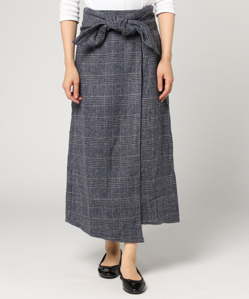 上品な大人の女性を演出してくれる“チェック柄ラップ風ロングタイトスカート” 【素材】 肌触りが優しく滑らかな手触りのウールタッチ素材を使用しており、 トレンドのチェック柄と相まって、より一層季節感のある雰囲気に。 【デザイン】 上品な印象を引き立てるロング丈のラップ風タイトスカート。 ウエストマークが大人の女性らしさを演出し、 ラップ風デザインがワンランク上のスタイリングに格上げしてくれる一枚。 中の着丈が短くなっているので、足さばきがしやすいのも嬉しいポイント。