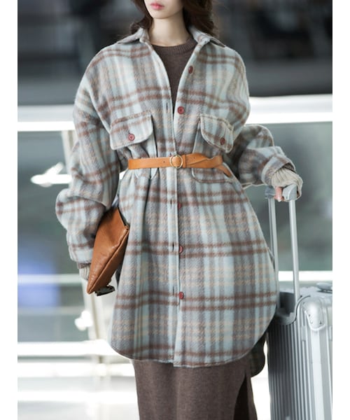 キャピトルターンチェックシャツワンピース(アウターとして着用可能)