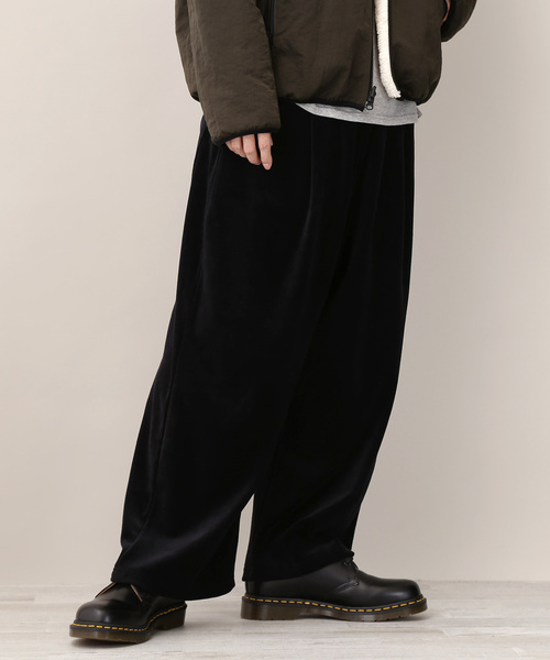 ■トレンドのシルエットが魅せるラフなスタイル『シルキーベロアワイドトラックパンツ』 オリジナルブランド【MONO-MART】より、都会的なシルエットを楽しむトラックパンツが登場。着こなしに新鮮味をプラスしてくれる旬なワイドパンツデザインで、こなれたスタイルを演出。高級感のあるベロアの素材感も楽しめる雰囲気たっぷりな1本。 ■最旬なスタイルを遊ぶワイドなシルエット。 今季トレンドのリラックス感を漂わせるキレイなワイドシルエットを実現。シューズなどのアイテムとの組み合わせ次第で様々なスタイルに着こなせる。シャツやカットソー、パーカーなどトップスを選ばずスタイリングが出来る点も嬉しい。ワイドテーパードデザインは、カジュアルさだけでなく、程よいモード感も演出するのでこれからの着こなしに大人の抜け感と軽快な印象を与え、この1本でトレンドなコーディネートを楽しめる注目アイテムとしてマストな1本。 ■魅力的な素材は柔らかな肌触り 当店のベロア素材は暖かく、光の当たり具合で光沢感が変わり、様々な表情を演出してくれる。また、その肌触りはやみつきになるほどさらっとしており、ストレスフリーな着心地は毎日でも着たくなるほど快適。カラーに関しても着回しがしやすいブラック、ネイビー、グレーの3色をご用意。ベーシックさの中に最旬・着心地・着まわしやすさを兼ね備えた一本はこれからの時期、活躍すること間違いなし! ※サイズに関して、ウエストは76cmと記載がございますが、ゴム使用のデザインになっているため、約76~100cmの仕様になっています。