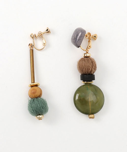◇ミックス デザイン イヤリング◇様々な形のウッドパーツやニットパーツをあしらったイヤリング。動きに合わせて揺れ感を楽しむことができ、横顔を女性らしく引き立てます♪肌馴染みの良いシックなカラーで、取り入れやすいのも魅力。旬のコーデュロイやベロアなどといったアイテムを使ったコーディネートとも相性抜群です☆【dictionary / ディクショナリー】プチプラで旬なアクセサリーやバッグを中心に展開するブランドです。キュートでカジュアルな物から、高見えする大人アクセまでエイジレスに幅広く展開。