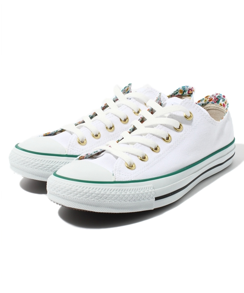 オールスターの裏柄プリントモデル。アッパーにはシンプルなカラーを、ライニングには人気の花柄プリントを使用し、ゴールド鳩目を施した春夏らしいオールスター。 サイズ24.5センチはウィメンズ用(W)、メンズ用(M)と分かれており、メンズ用(M) の方が若干幅広の作りになっております。 ご自分の足幅に合わせて適切なサイズをご選択ください。