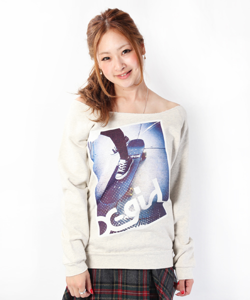 BILLYフォトシリーズにスウェットアイテムが初登場!襟ぐりが大きめに開いた大人なデザイン★ショーツなどに合わせて元気コーデでも、女の子らしくスカートと合わせてガーリーにも!!後ろにはBILLYサイン入り♪ model: 身長162cm、体重45kg 着用サイズ:1