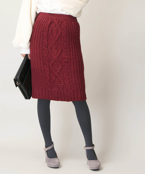 ニット素材を採用したペンシルスカート。単色仕様ながらも、ロービングケーブル編みの柄目がアクセントになります。 人気のハイウエスト仕様で、ボディラインに沿うようなタイトなシルエットが女性らしい雰囲気を着こなしに演出します。ウエストは伸縮性があり、リラックスして快適に着用頂けるのも特長。 今季はベレー帽やスニーカーなど、小物で遊びを効かせたコーディネートもオススメです。 ※裏地有り 【セットアップ対応商品】※別途販売となります。 ・ロービングケーブルタートルニット(DU17WN12-L003) ・ロービングケーブルカーディガン(DU17WN12-L002) ・ロービングケーブルニット(DU17WN12-L001)