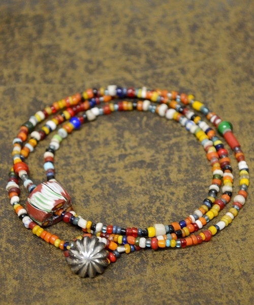 SHIPS別注 NORTH WORKSのアンクレット 1800年代後期~1900年初頭にかけて流通し、種のように小さなビーズで古くから世界各国の先住民に愛されてきたシードビーズをメインに、ホワイトハーツやミルフィオリビーズ、ターコイズ等をミックスして仕上げ、「NORTH WORKS」得意のモルガンダラーと呼ばれる1878年~1904年、1921年にアメリカで発行された銀貨であるアンティークコインを使用し、加工して施したブレス&ネックレスになります。ネックレスとしての使用はもちろん、腕に巻きつければトレンドの重ね付けにも対応出来る絶妙の長さで仕上げているのがポイント。バックボーンに富んだ味わい深いアイテムをセレクトし、熟練の職人達によって脈々と受け継がれるアイデンティティーと共に、ハンドメイドによる雰囲気満点の表情豊かに仕上がったアイテムを、十二分に楽しめるアイテムになります。- NORTH WORKS - 前身の“NORTH CAFE AND CRAFT”創始者の橋本毅氏と共に物作りを続けてきた職人4人により、 彼の意志を受け継ぎ、素材の美しさ、ベーシックなデザインを基本として、変わらない価値をもつモノを作り続けているブランドです。原産国:日本※原料にアンティークコインや金属、および天然石等を使用している為、1点1点形や色、大きさ等若干異なります。予めご了承下さい。 ※画像の商品はサンプルです。