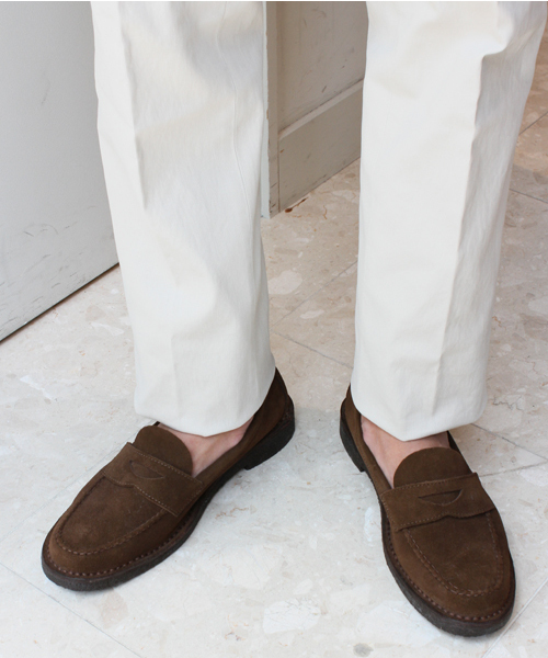 オリジナルクレープソールシリーズにローファーモデルが登場。クロップド丈のパンツや、ロールアップでくるぶしを見せるコーディネートにお勧めのデザイン。もちろん、スリムなテーパードパンツにもあわせやすいよう、トゥは丸みをやや削ぎ落としたスリムなデザインに仕上げています。履き込むほどに味が出るスウェード素材を使用し、土踏ます部にアーチをつけたフィット感の高いインソール仕様でスニーカー感覚で履ける一足です。 店舗にお問い合わせの際は下記の品名/品番をお申し付け下さい。 品名:UA SUEDE LOAFER 品番:1331-699-5383