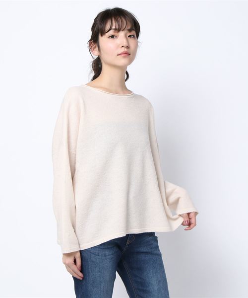 ボートネックが首元から顔周りをすっきりとした印象に見せてくれる、洗練レディなプルオーバー。落ち感のある柔らかなシルエットが気になるラインをカバーしてくれるのも◎合わせるシーンやテイストを問わず、オフィスにもカジュアルにも着こなせるマルチな1枚です。