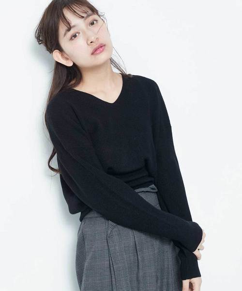 デコルテを開放的に魅せるネックラインが、女性らしさをアピールするニットプルオーバー。 目の詰まったリブ編みのミニマルなフォルムで、様々なテイストのファッションを楽しむことが出来ます。