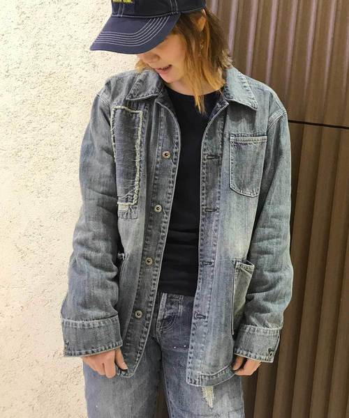 11ozムラ糸インディゴデニムを使用したダメージカバーオールです。 特赦な洗い加工や手作業によるダメージ・リペアのパッチワークが、 リアルなヴィンテージ感を演出しています。 1940~1950年代のヴィンテージカバーオールをデザインソースにしたディテールがポイントです。 【ATTENTION】 この製品はヴィンテージ風の外観を与えるため特殊な加工が施されてます。 生地の表面に擦り切れや傷をつける加工を施し、着古した服のイメージを出したデザインで 欠損品ではありません。また、ダメージの出方は一枚一枚異なりますのでご了承ください。 着用や洗濯を繰り返すことで、更に擦り切れ等が生じてきますが商品の特性として ご理解ください。