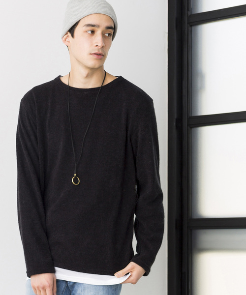 ロングリングネックレスがセットになったアンサンブルニットソー。それぞれ別々にお使い頂けますので、着こなしの幅が広がるひと品。 単色仕様ながら、付属のネックレスが手軽に着こなしのアクセントに。肌触りの良い柔らかな生地感と程よくスマートなシルエットで、リラックスして快適に着用頂けるひと品。一枚で着用頂くのは勿論、インナーとしてのアクセント使いにもオススメ。 また、今季はベレー帽やスニーカーなど、小物で遊びを効かせるような着こなしもオススメです。