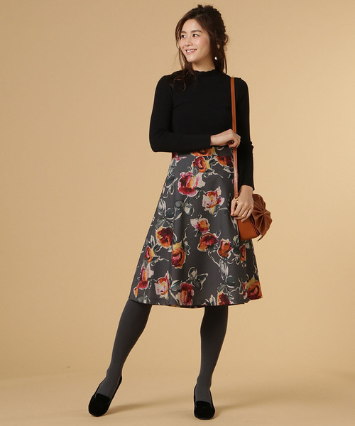 ◆スウィングルオリジナルプリント柄のスカート大人っぽい大きめのフラワーが目をひきます!丈感は膝丈になっており、上品な印象になります。トップスはフィット感、ゆったり感のものでも合わせられます。