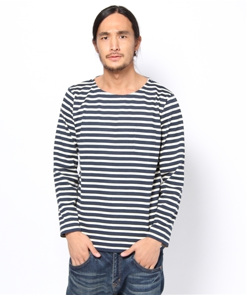生地にハリとコシがあるUSAコットンを使用したボーダーカットソー。一枚で着て頂くのは勿論、首周りにゆとりのあるボートネック仕様でシャンブレーシャツなどとのレイヤードも楽しめます。定番のボーダー柄は、アイテム問わず幅広い着こなしに対応し、シーズン通して長くご愛用頂けます。一枚で着て頂くのは勿論、インナーとしてのアクセント使いもオススメです。 店舗にてお問い合わせの際は、下記の品番をお申し付け下さい。型番:V12AW-1204-001原産国:中国 model:H180 B86 W70 H86 着用サイズ:LARGE