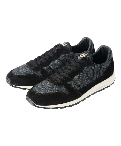 80年代のランニングシューズが原型。アッパーにはウールとコットンのジャージ素材を使用。杢糸を用いて霜降り感を演出しました。ソフトな感じと暖かさを持ち合わせた素材です。アウトソールには三層構造(EVA.PU.合成ゴム)を採用しクッション性を向上させています。