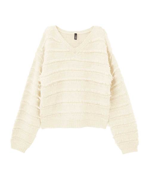 ニット全体にフリンジを施したデザイン性高い“フリンジボーダーニット”が登場。インパクトのあるニットだからこそ色味を落ち着かせた杢グレーと、大人可愛いオフホワイト、エレガントな印象を与えてくれるパープルの3色をご用意しました。遊び心のあるニットでも落ち着いたカラーで派手すぎずコーデに馴染んでくれます。主役級ニットだからこそ、ボトムはシンプルなフレアスカートデニムと相性抜群。ワイドパンツと合わせてボーイズライクなコーデも◎周りと差がつく、お洒落さんには欠かせないアイテムです。◆素材チクチク感がなく、もっちりとやわらかなニット地。伸縮性あり/ニット特有の透け感あり/裏地なし◆ケア方法・お洗濯の際は手洗いをおすすめ致します。◆注意事項*撮影場所やイメージにより実際の商品と色味が若干異なる場合がございます。商品のお色味はカラーバリエーション画像をご参照ください。