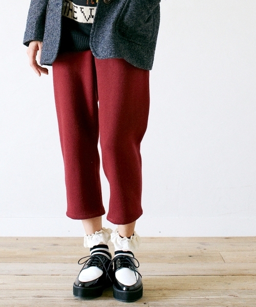ウール素材を混ぜ込んだカルゼ地を使用した9分丈パンツ。軽さと保温性が特徴で、程よい起毛感がぬくもりある表情を演出します。ウエストはゴムになっており、脱ぎ穿きもラクチンです。フロントに配したタックにより、太もも周りにゆとりを持たせ裾に向かって細くなるシルエット。リラックスして楽に穿いて頂けるのは勿論、足首をスッキリと見せてくれます。 店舗にてお問い合わせの際は、下記の品名・品番をお申し付け下さい。 品名:ウールカルゼ9分丈タックパンツ 品番:BL12AW-2601-004 検索が今よりずっと簡単に♪手軽にWEGOのアイテムをチェック!! >>お気に入りショップに追加はこちらから<< model:H160 着用サイズ:FREE model:H160 B81 W63 H92 着用サイズ:FREE