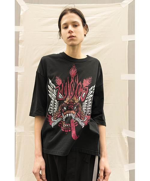 バリ島に伝わる聖獣BARONG(バロン)をイメージしたグラフィックTシャツ。ブラックベースにビビッドなプリントが映えるインパクト大の一枚です。少し長めの袖とゆとりのあるシルエットで着心地も抜群。デニムなどのカジュアルなアイテムにはもちろん、レディな着こなしのスパイスとしても活躍する万能Tシャツです。