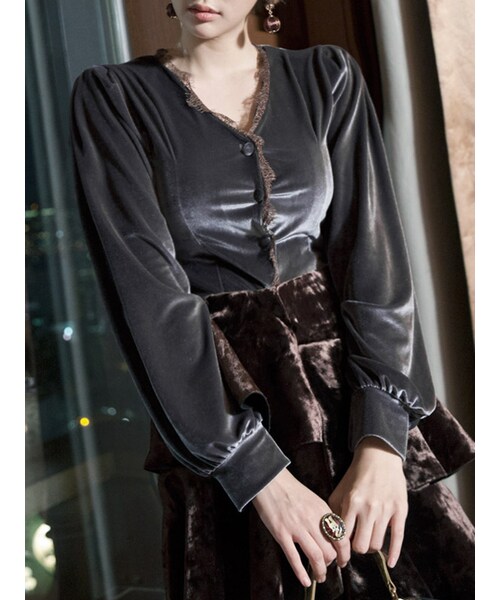 DINT(ディント)の「語ベンミューズベルベットブラウス(カーディガンで可能)(その他トップス・レディース・Brown/Black/Pink・one(44~66size))」の1枚目の写真