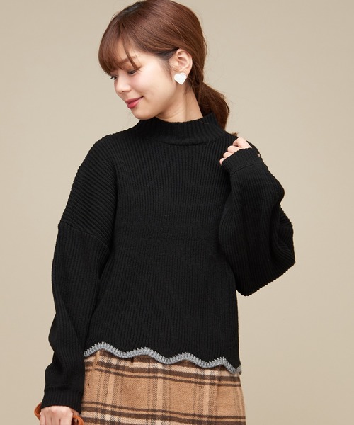 【2017AW natural couture】バイカラーのラインが可愛い、ニットが登場 ナチュの人気のデザインスカラップが今度は裾デザインになりました♪ カジュアル、フェミニン どちらが好きな大人の女性に着てもらいやすい、緩めなシルエットとなっています。 裾のバイカラー部分は、キラッとラメが入っているこだわり!