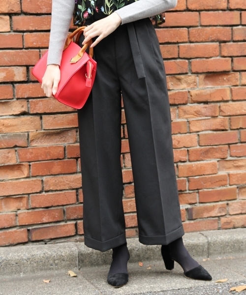 ベルト付きのワイドパンツです。 オンにもオフにも使えるシンプルなワイドパンツ! トップスをインすれば脚長効果でスタイルアップ見え♪