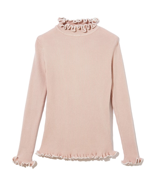 袖口とネックラインに飾ったフリルが大人可愛いニットトップス♪ 配色であしらったパイピングがカジュアルなアクセントに♂ リブ編みなので、すっきりとした着こなしへと導く一品☆ ★伸縮性があります。 ★素材の特性上、カラー・形・サイズが、写真・サイズ表示と多少異なる場合があります。