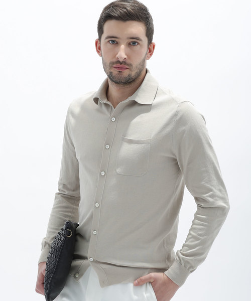 nano LIBRARY (ナノ ライブラリ) 上品さとリラックス感を持ち合わせたシャツ-素材の特徴-・ニット素材を使用したシャツ・肌触りの良い綿素材を使用-デザインの特徴-・袖と裾はリブ仕様・カーデとしても使えるデザイン-サイズ感-・普段の着用サイズで自然な着こなしに・スマートに決まるシルエットです-このような方におススメ-・他とは違うデザインのシャツが欲しい・春秋に羽織で使えるカーデが欲しい・インナーにも羽織にも使えるのが良い-スタッフコメント-編み目が細かく、なめらかな肌触りと美しい光沢感が魅力のファインゲージニットを使用したシャツ。上品な印象とリラックス感を持ち合わせており、トレンド感のある着こなしをお楽しみ頂けます。袖と裾にはカーディガンのようにリブが施されているため、羽織りでの着こなしも◎。シャツとカーディガン、両方の特徴を併せ持つアイテムに仕上がっています。洗濯:洗濯機使用可※洗濯の際はネットをご使用下さい。※他のものとの引っかかりにご注意下さい。