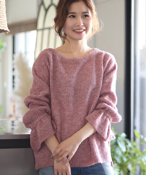 ◆Bab Bou Jeloud(バブ・ブージュルード)◆可愛いキャンディースリーブとラメのスヌードが今年らしいトレンドニット♪ふっくら柔らかいニットを使用しています。ゆったりめのシルエットでキャンディースリーブの袖口のボリュームがとても可愛らしいデザイン。付属のスヌードはラメを入れたニットを使用しています。スヌードを取って使う事もできますが付属のスヌードを肩を覆うように付ける事でオフショルダー風に巻いて2WAYで楽しんで頂けるニットになります。スヌードを付けずにゆったりシルエットでパンツ合わせや、スヌードをつけてスカートと合わせて女性らしいスタイリングも◎