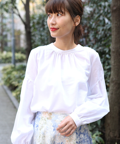 キュプラのもつ光沢感、しなやかさに天然素材のコットンをブレンドした生地を使用しボリューム袖がフェミニンなブラウスをつくりました。 後ろボタンで着用する設定ですが、前で着ることもできます。 スタンドカラーがイノセントな雰囲気をか持ち出します◎ ※画像の商品はサンプルです。 実際の商品と色味、仕様、加工、サイズ、素材等が若干異なる場合がございます。 ※工場の生産の都合上、納期が変更になる場合がございます。 発送日の前後については予めご了承ください。