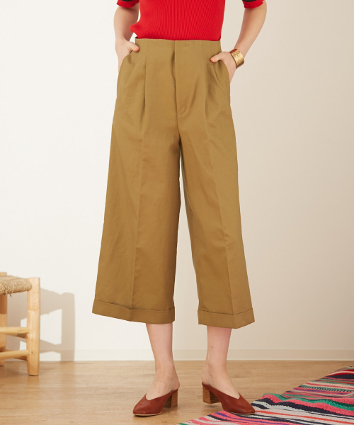 シンプルながら裾のマッキンデザインで差のつくワイドパンツ。ハリ感と軽さを兼ね備えた素材感でこれからの季節に快適に履いていただけます。ハイウエストですっきりとしたシルエットは、どんなトップスともグッドバランスです。豊富なカラーバリエーションも魅力。