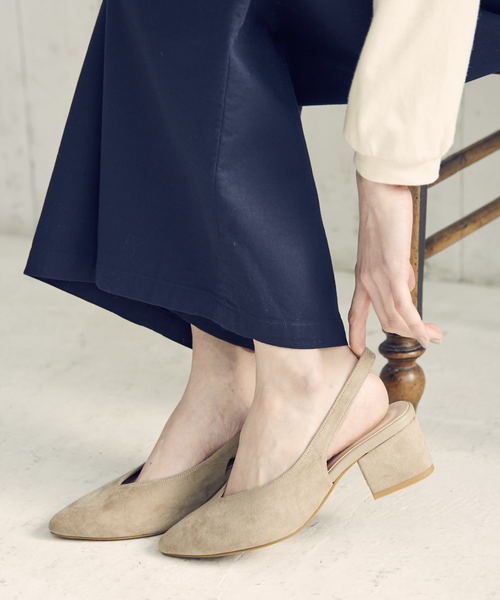 素材やカットラインでモード要素を足したバックストラップデザインは素足はもちろん、ソックスレイヤードも楽しめるお洒落アイテム。 スエードを使用したベージュ、レッドはカジュアルに履きたい方におすすめ。 かかと部分にはゴムが付いているのでラクに履けるのも嬉しい。 【オススメPOINT】 ◇やや深めな履き口でホールド感◎ ◇モードなパンプスもカジュアルなミドルヒールで挑戦しやすい