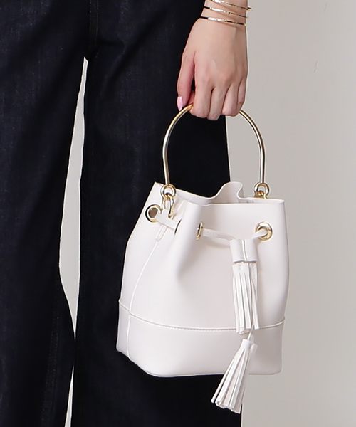 トレンドの金具のハンドルがポイントの巾着ショルダーバッグ。ソフトなレザーと金具との相性も抜群!ミニマムなサイズ感も女性らしさ引き立ちます。華やかなイエローと人気のローズピンクをプラスして、シックなビンテージ感漂う、旬なスタイリングをアップデートしてくれます。※ショルダー調節・取り外し可