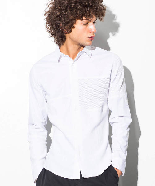 ブロード生地とニットのコンビネーションが特徴的なブロッキングデザインシャツ。 素材の立体感と異なる風合いの組み合わせが目を引く仕上がりです◎ 1PIU1UGUALE3 RELAX ウノ ピゥ ウノ ウグァーレ トレ リラックス "極上の普段着"としてファッショニスタに愛されてやまない、1PIU1UGUALE3 RELAX "至高" "究極"への挑戦を胸にデザイナー自らが厳選し、着る者に高揚と感動を齎す"一着入魂"された作品で知られるTomohiro Ozawa のプライベートコレクション、1PIU1UGUALE3のカジュアルウェアラインである。 服の価値を知る玄人からこそ絶対的な支持を受ける、リラックスラインならではの"究極の着心地"を是非体感してほしい。