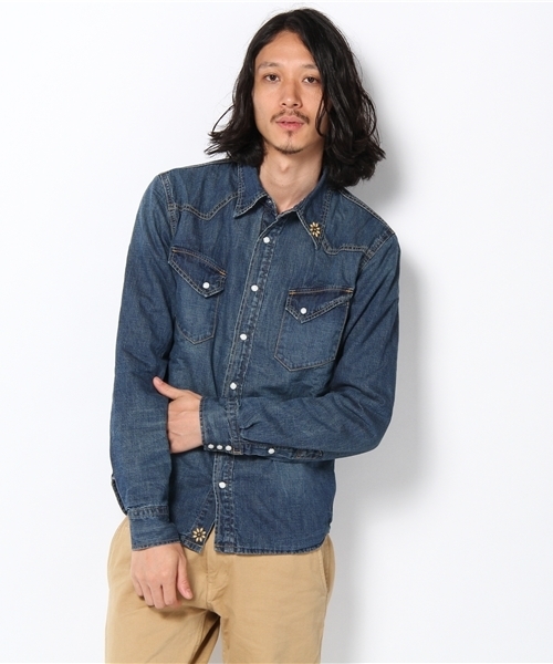 3M™のシンサレート™をサテン地にキルティングで貼付けたCPOデニムウエスタンシャツ。 ボディのデニム素材は、旧式のシャトル織機で織った8オンスデニムで整いすぎないヴィンテージの風合いを再現し、横糸にはカーキ色に汚した糸を打ち込み、デニムに深みを出しています。また、パッカリングを味わいやすくするため、それぞれの箇所で巻きの入れ方を変える等の隠れた心憎い工夫が随所に施されています。職人の手作業による丹念で、ワザとらしくない自然な色落ち感です。すべて手による落としのため、奥にはしっかりとインディゴが残り、濃淡がはっきりと出ています。 高機能中綿素材である3M™のシンサレート™は、羽毛の先とほぼ同じ太さのマイクロファイバーと厚さを保つためのポリエステルファイバーで構成された不織布。複雑に絡み合った微細な繊維の間には、大量のデッドエア(動かない空気)を封じ込められ、薄くても優れた断熱性を発揮。同じ厚みの一般的なポリエステル綿やダウンと比較すると、1.5~2倍の保温機能があります。 REMI RELIEF / レミ レリーフ 「REMIX=工夫、創造」と「RELIEF=省く」を意味しています。ひとつひとつの工程に創造、工夫を付け加えながら余分なものは取り除き、省いていく結果「いいもの」が生まれるというMEISTERの思想が理想です。デザイナーは加工のスペシャリスト・後藤豊氏。 Model : H178 B85 W70 H88 Size : L 店舗へお問い合わせの際は下記品番をお伝えください。 品番:38-11-0395-671