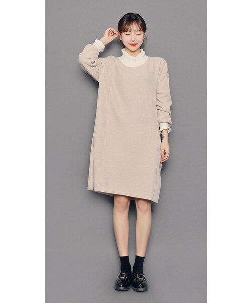ハイネックデザインのフリルディテールで暖かく女性らしい雰囲気を与えるワンピースです。ゆったりとしたフィット感で体型カバーはもちろん、リブ素材で細見え効果も期待できます◎膝までの程よい丈感にサイドスリットを入れすっきりとした印象に。動きやすく着心地ラクちんなデイリーアイテムです。