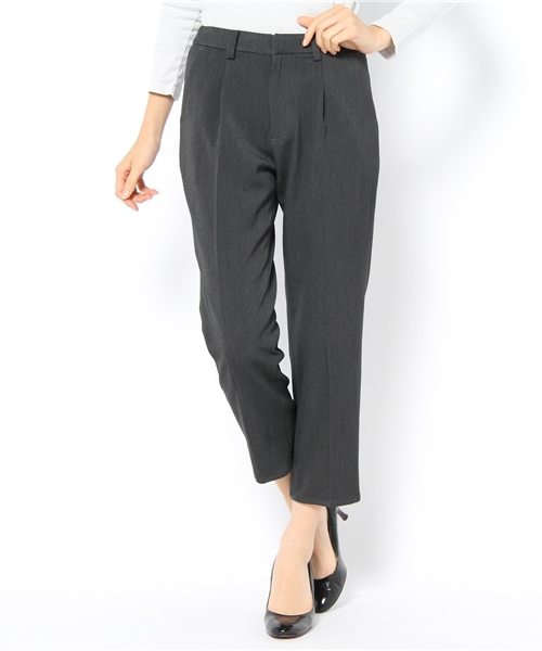 すっきりとした細身シルエットの8分丈パンツです。さらりとした着心地のドライツイル生地を使用。フロントにタックを施し、ウエスト周りはゆとりのある仕上がりです。 オフィスシーンにお勧めのひと品!コーディネートに合わせやすいシンプルパンツは、ワードローブに一枚は持っていたいベーシックアイテムです。 モデル着用サイズ:36 model:H165 B83 W61 H85 店舗へお問い合わせの際は下記品番をお伝えください。 品番:52-23-0006-012