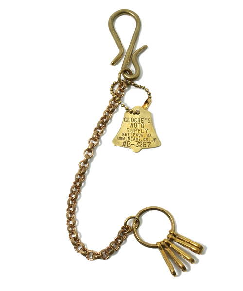 スターと鐘のモチーフが付いたキーチェーン。ベルトループやバッグの取っ手に引っかけて使うことができる優れもの。鍵が必要な時はチャームの先をたどれば鍵がついているので、探す手間が省けます。鍵にキーホルダーだけをつけて使っていた方に是非チェーン付の仕様も試してみていただきたいです。便利さを実感するのではないでしょうか。店舗へお問い合わせの際は下記品番をお伝えください。 品番:33-02-0034-571